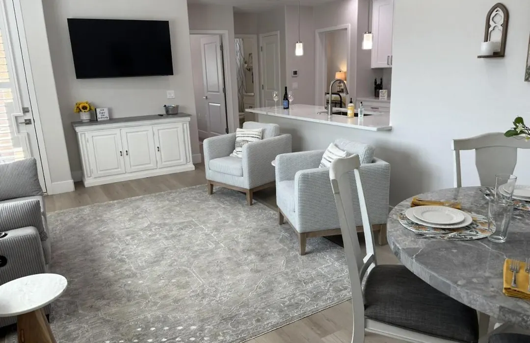 Cet appartement River Trail Stays - Rivers Edge dispose d'un patio et d'une cuisine, ainsi que de conforts tels qu'un lave-linge. Pour plus de commodité, un bain à remous et une machine à laver sont disponibles dans cet immeuble.